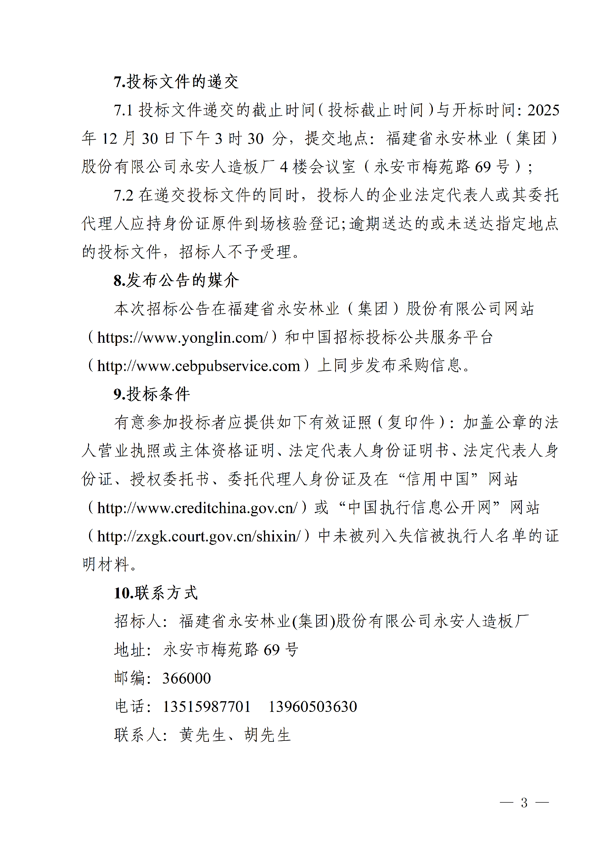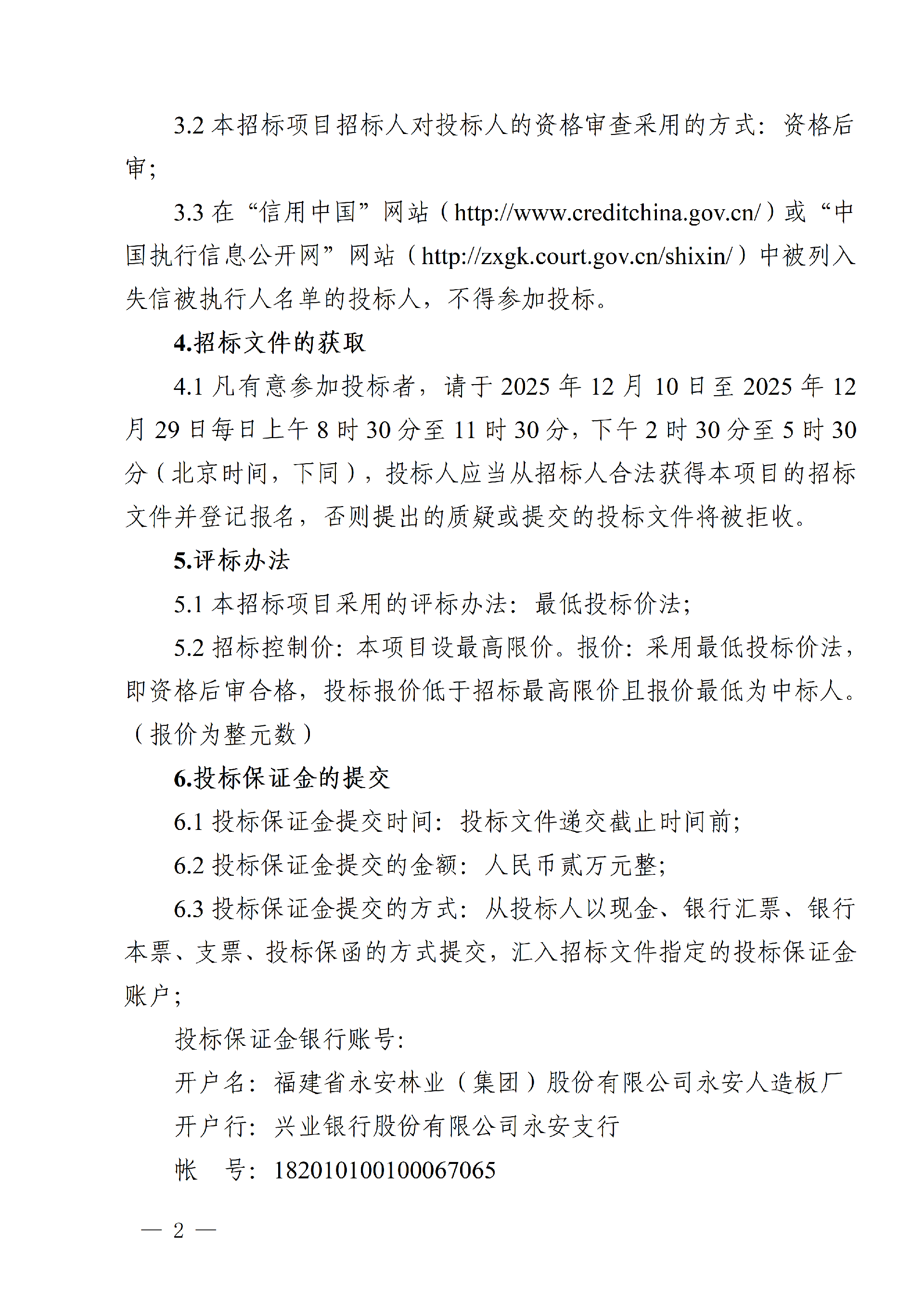 永安人造板厂工业甲醛溶液采购项目招标公告