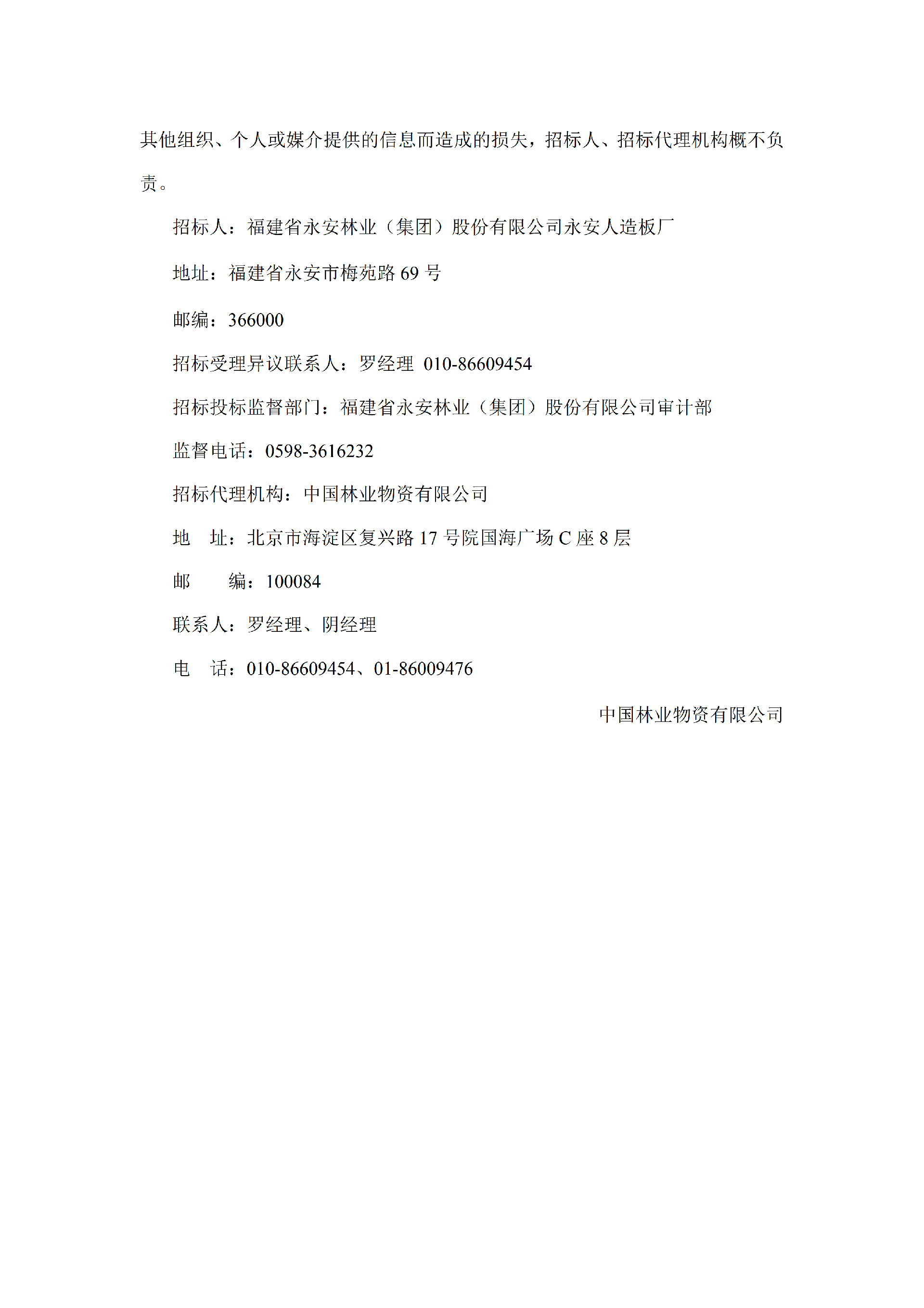 永安人造板厂工业甲醛溶液采购项目招标公告