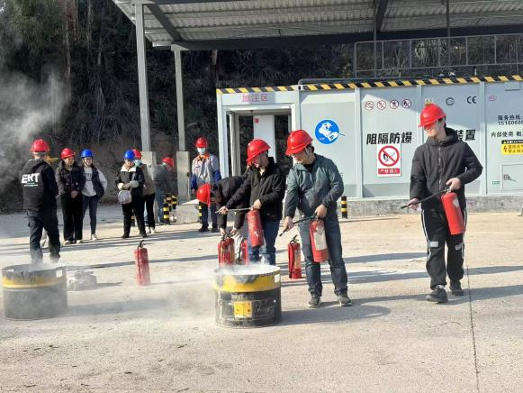 本次演练聚焦企业生产区域重点风险源,以“撬装加油装置突发火情”为模拟场景,重点开展灭火器“提、拔、握、压”四步规范操作实训和消防水带快速铺设、接口密封、水压控制等关键技术动作演练。整个演练过程严格按照应急处置预案流程开展,各环节衔接流畅、操作规范,充分检验了企业应急指挥体系的响应效率和员工的实战操作能力。