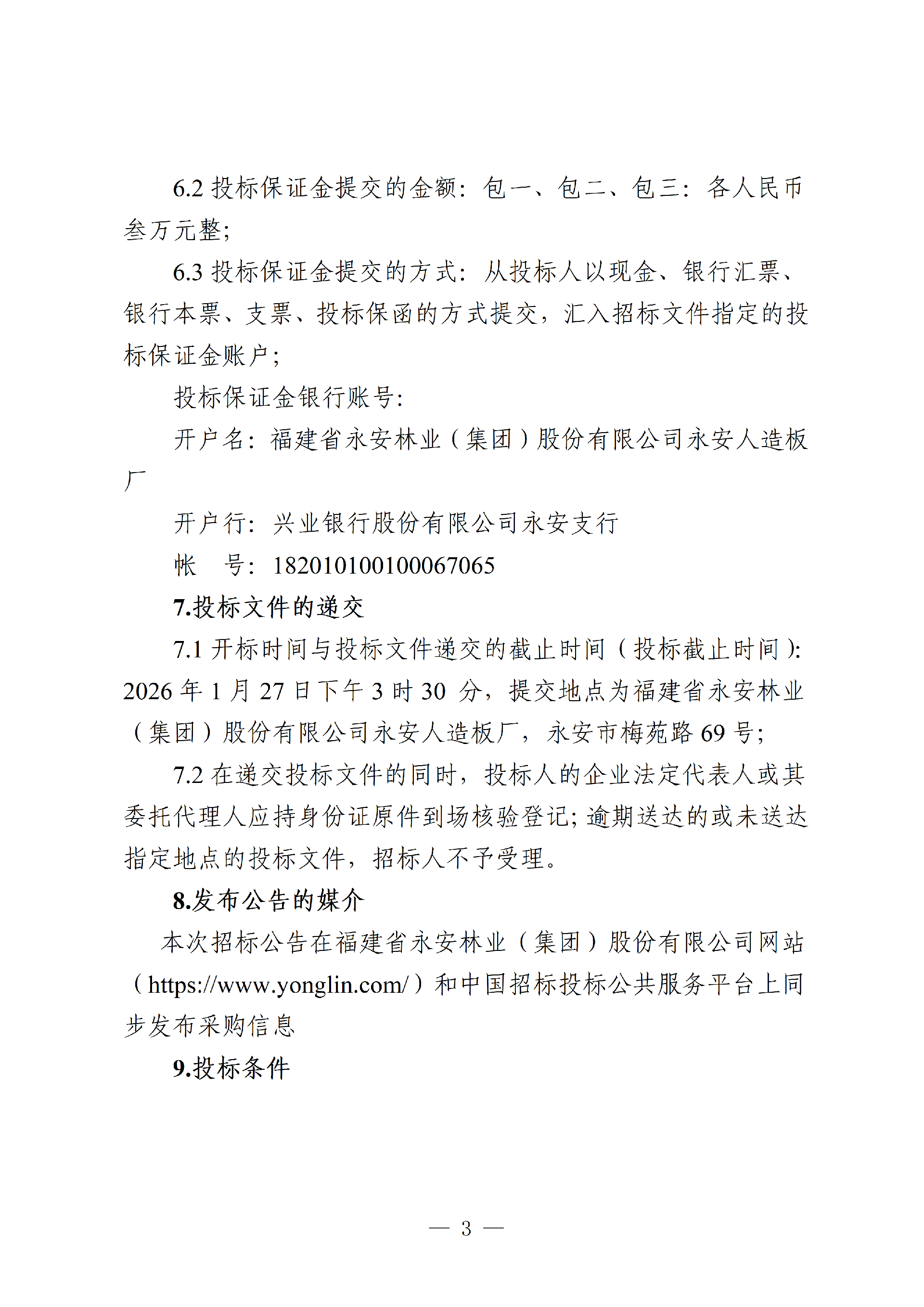 永安人造板厂生产废料对外销售项目招标公告