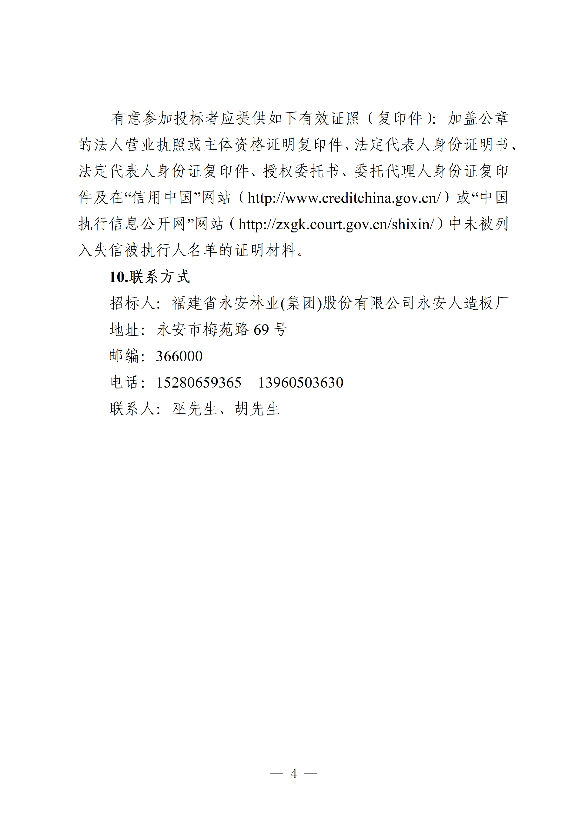 永安人造板厂石蜡采购项目招标公告