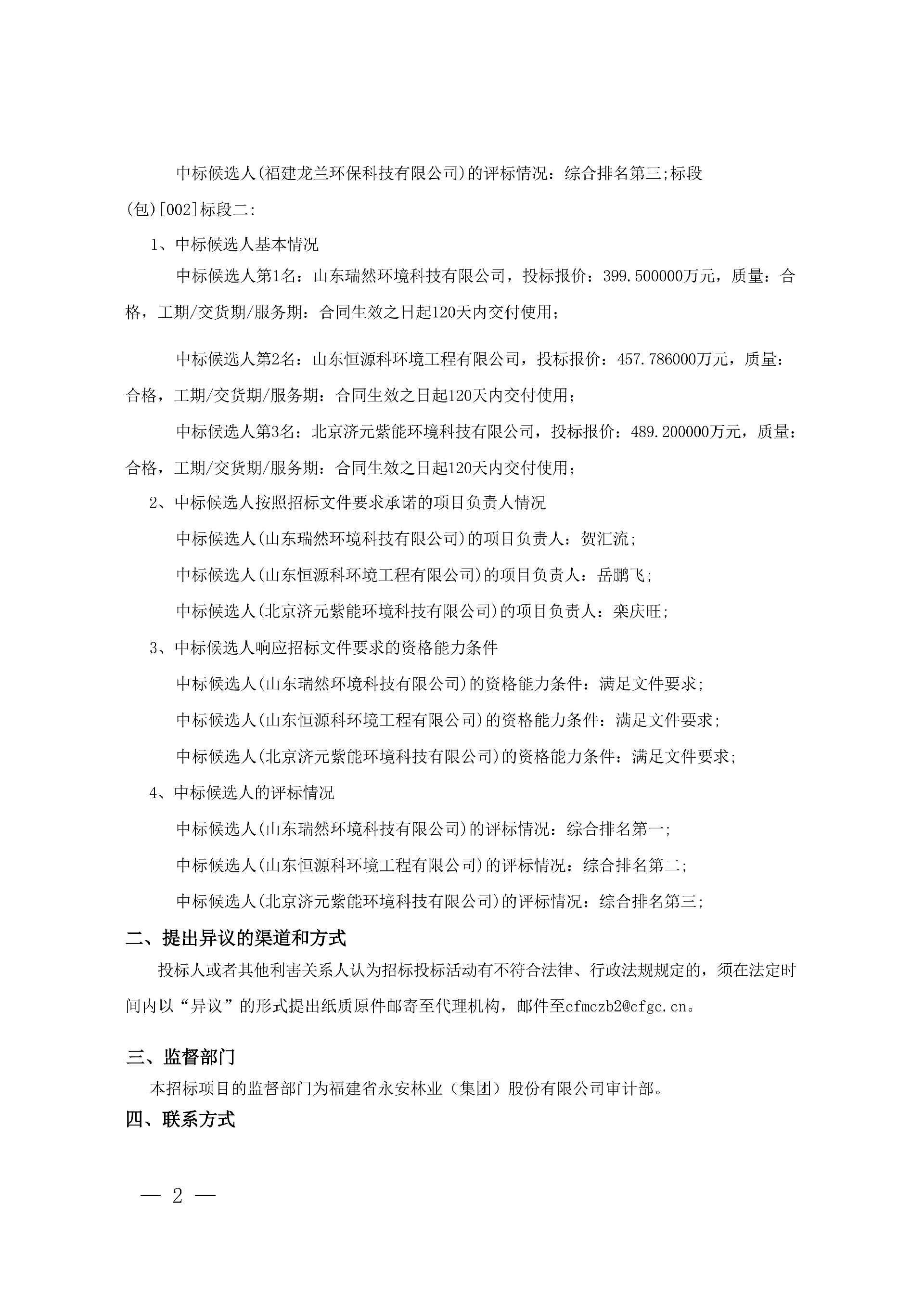 永安人造板厂尾气治理系统升级改造采购项目(二次)中标候选人公示