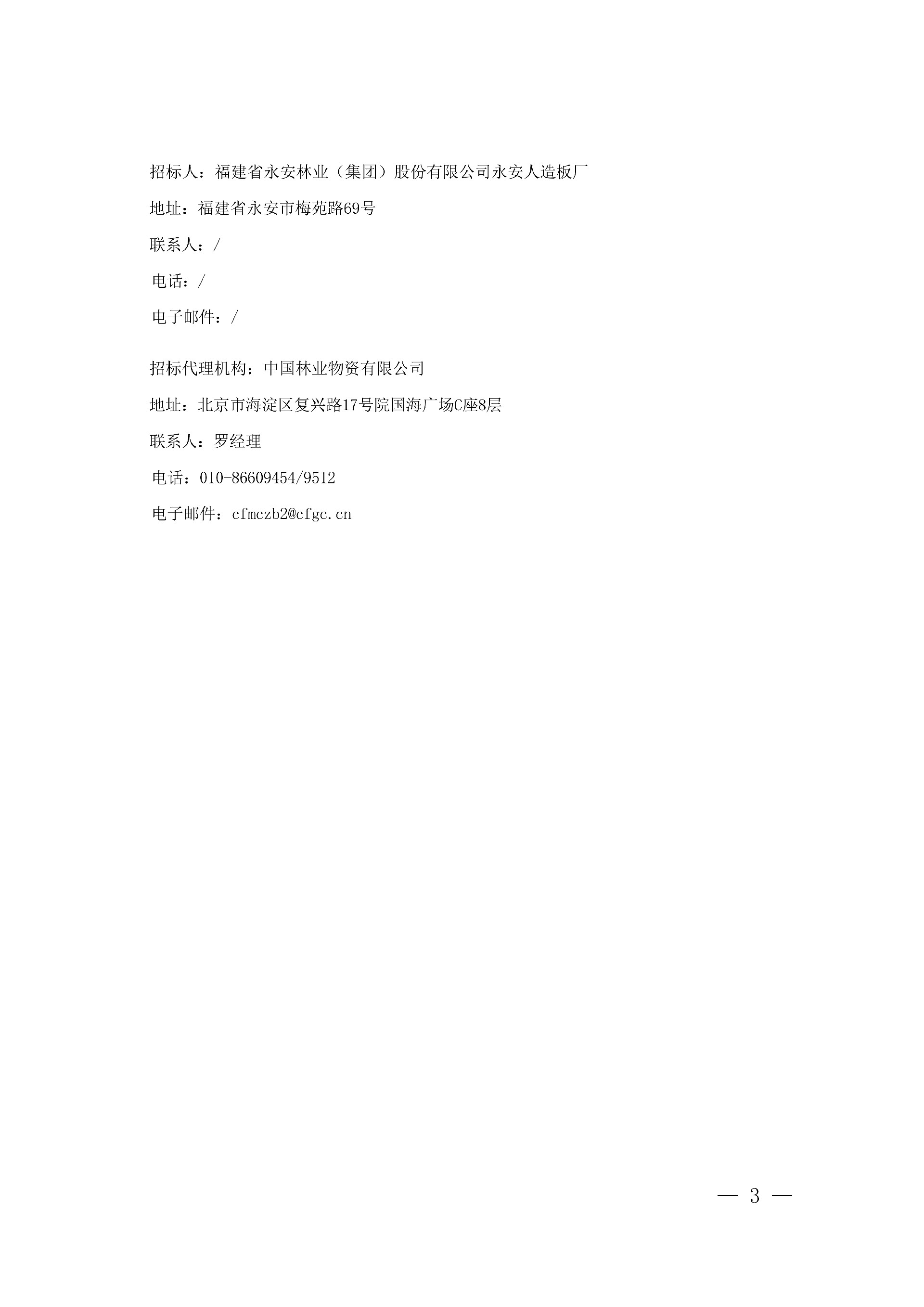永安人造板厂工业甲醛溶液采购项目招标公告