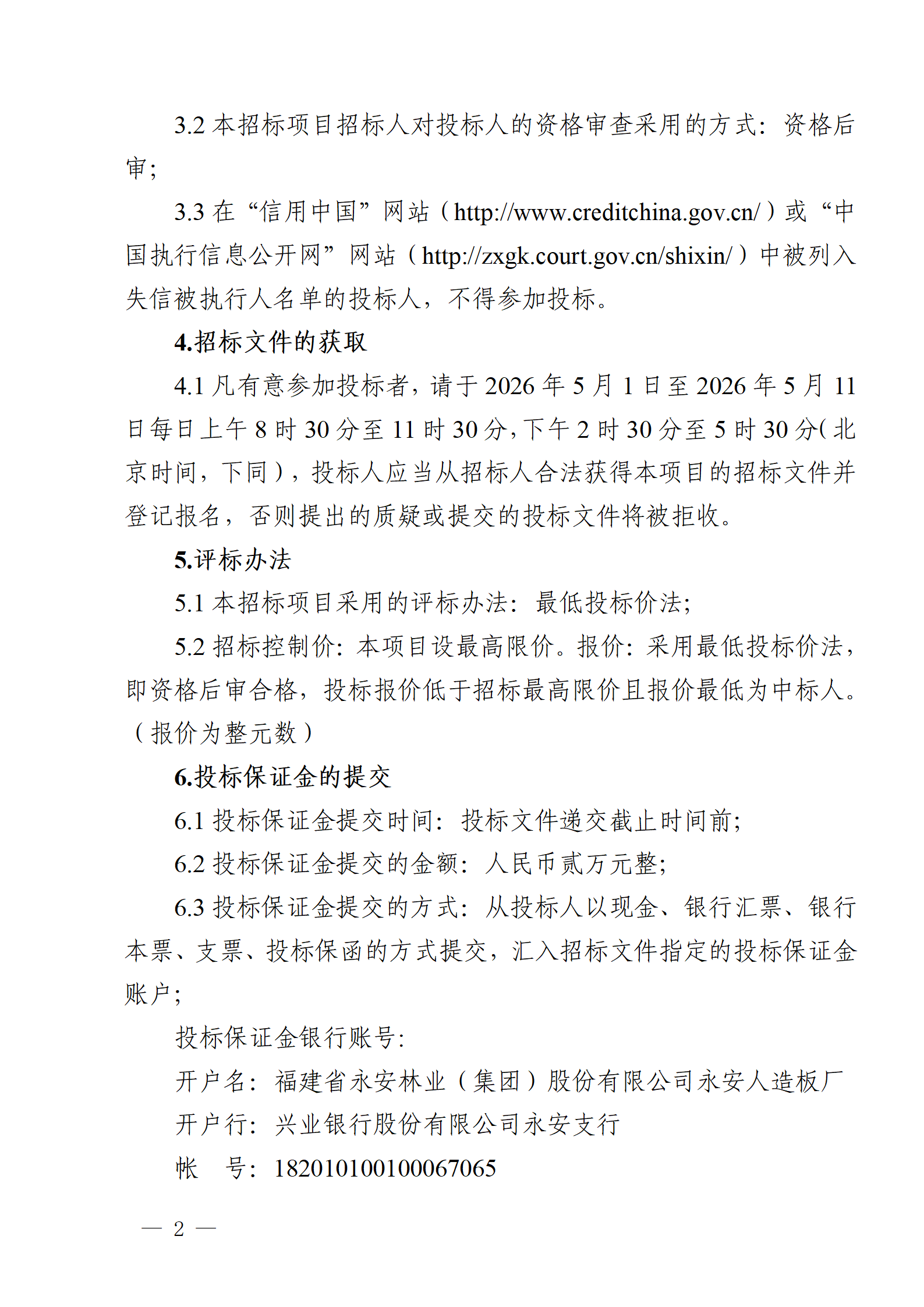 永安人造板厂尿素采购项目招标公告